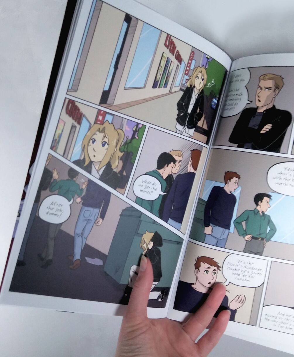 Written and illustrated by Ene Karels/AngelEneArt, this is a physical, saddle stitched, 6.62x10.25 comic book with 40 full color pages. Independently printed.
