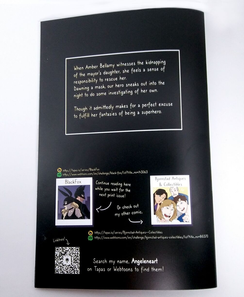 Written and illustrated by Ene Karels/AngelEneArt, this is a physical, saddle stitched, 6.62x10.25 comic book with 40 full color pages. Independently printed.