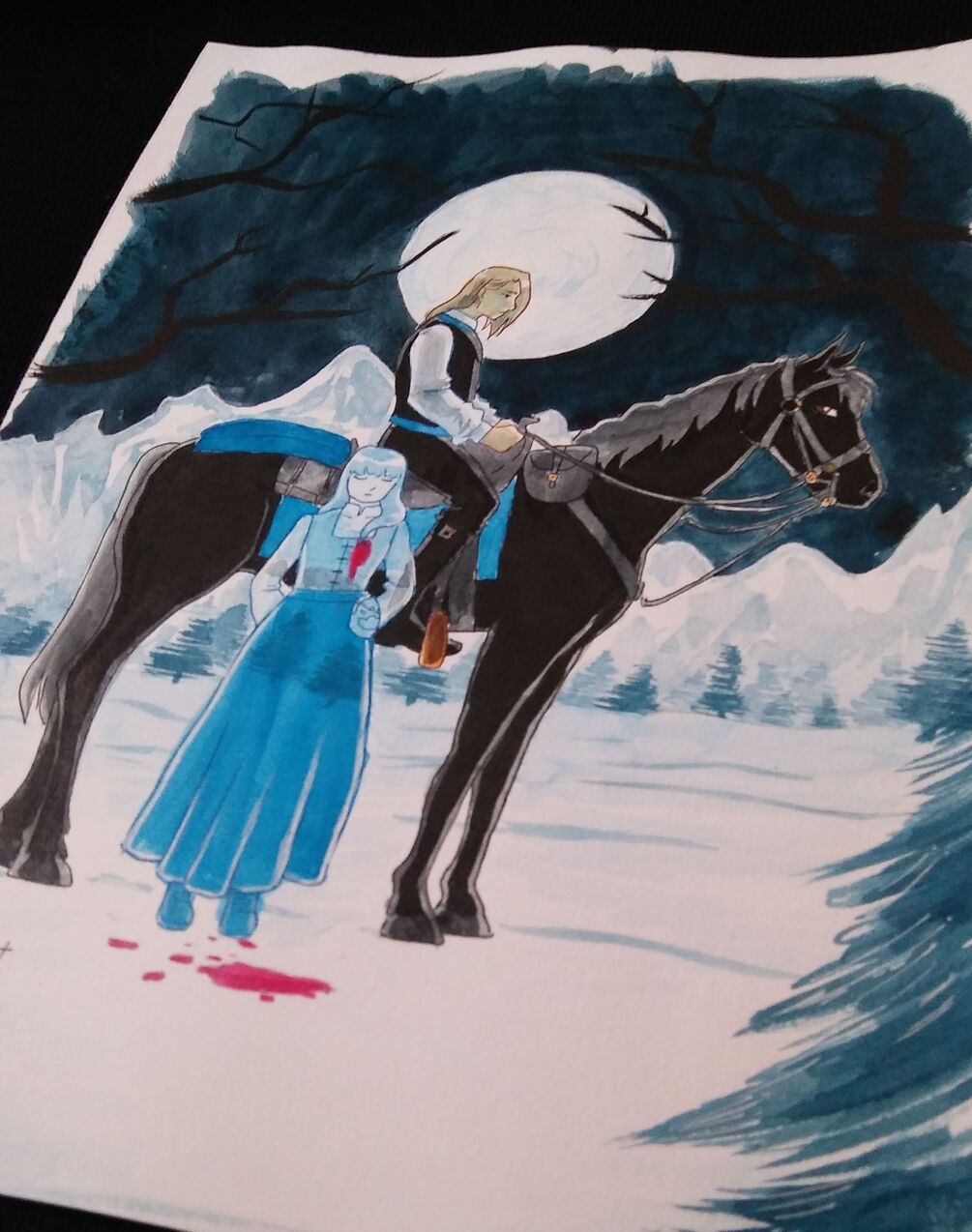An original 10x7in inked piece with Ethel's ghost standing near a remorseful Hanne, as he mourns in the night.